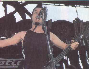 The back-lit spotlight caught Wayne Static at just the right angle. As the on-stage chaos welled up around him, the glaring beam of pure white light shot from behind him, silhouetting Static's thin frame and making his foot-high strands of hair appear even more outlandish than usual. As the standing-room-only crowd roared its approval, Static-X's guitarist/vocalist continued to tear into his tortured axe, making it roar in conjunction with the high-energy songs that in recent days have propelled Wayne and his bandmates, guitarist Koichi Fukuda, bassist Tony Campos and drummer Ken Jay to the very pinnacle of hard rock acclaim. It was abundantly clear to everyone in attendance that this Los Angeles-based "evil disco" band had arrived in the big time. Their various shows across the face of the North American continent had begun to reach a fever pitch---as had the response to their now-million-selling debut disc, Wisconsin Death Trip. "I'm the first one to admit how amazed I am by all of this," Wayne said as he cooled off after the band's scorching set. "We've worked our butts off to get here, but it's really been worth it. All the touring, all the travelling, all the interviews, as well as everything else adds up to being a lot of work. But when you're in a band like ours, and you really want to do something that people will remember, you realize it's all just part of the job." ![]() Just doing their job has certainly paid off big-time for the members of Static-X. Their videos, especially for their breakthrough single, Push It, have often basked in heavy-rotation glory on MTV. Their tours, which have included stints with the likes of Powerman 5000, Slayer and System of a Down-as well as a key role in this summer's Ozzfest 2000- have brought them to the attention of tens of thousands of new fans. And the unexpected success of their aforementioned debut album has gone a long way towards establishing this decidedly different quartet as one of the true metal sensations of the new millinnium. Indeed, it's been an exciting, amazing, unpredictable time for this LA.-via-Chicago unit. In fact, if you didn't know better you just might start thinking that this group's "rythmic trancecore" sound-a mighty mix of metal heaviness, industrial moodiness and techno energy-could very well be hard rock's Next Big Thing. "We're four guys who grew up on rock and roll," said the wild-haired Static. "It was what we ate for breakfast, it's what we dreamed about at night, and it's what we played during every waking hour. Rock and roll has really consumed our lives for as long as we can remember, so on this album we've tried to regurgitate as much of it back as we possibly could." According to legend (or at least the band's record label bio), both Static and Jay originally called the Midwest home. Back in the early '90s, both rockers made their first steps into the music industry with the Chicago-based band Deep Blue Dream, a group that happened to share its rehearsal space with the Smashing Pumpkins before Corgan's crew hit the big time. Despite some positive feedback and a few promising moments, Deep Blue Dream soon came to a crashing end when its members realized that they'd rather spend time at the sunny shores of the Left Coast than battling through Chicago's notoriously cold winters... and battling against the town's notoriously slow rock scene. A few weeks later, Static and Jay had relocated to the fun-in-the-sun capitol of El Lay and as they began to make the rounds through that city's ever active club circuit, they happened upon both Campos, who had been playing a variety of area death metal bands, and Fukuda. There was an instant bonding between the four young musicians, and the fledging unit soon began the arduos tasks of writing songs and hitting the ever-unpredictable So Cal club circuit. After having their decidedly heavy material initially recieve some less-than-enthusiastic reviews in the local press and some thumbs-down responses from the au-courant patrons of the Sunset Strip, Stati-X slowly began to win over the city's notoriously jaded club mongers. By mid-1998 they had ben approached by a major label that believed in the band's heavy-handed style, and was anxious to make his quartet a figurehead for hard rock's latest revival. "It's taken us a while to get what we're doing to where we want it to be," Static said. "It wasn't easy coming up with this organic-electronic mix we now call 'evil disco.' We've gotten a lot of help along the way, bands that have seen us, or heard one of our tapes, and asked us to play a show or two with them. Coal Chamber certainly helped in that regard. They saw us at a really small show, and they asked us to open for them at the Roxy in L.A. That really helped people take us seriously and made them stop and give our music a listen." Less than three months after inking their label deal, the Static-X crew had recorded such tracks as Push It, I'm With Stupid and Stem, all destined to serve as the backbone of Wisconsin Death Trip, an album whose title is drawn from the strange turn-of-the-century photo book that Static found at a flea market. But even before that album hit the streets, Stati-X was making news when one of their songs, Bled For Days, was included in the Bride of Chucky soundtrack. That initial success was compounded when their debut disc emerged as a ful-blown heavy metal extravaganza, complete with churning guitars, burning vocals and a look that was as strange as strange could get. It's been one wild, wacky ride for Static-X, but ol' Wayne insists that the group's musical journey is only now just beginning to take shape. In fact, the fright-haired frontman believes that we've all experienced just the first blush of the power and glory of the group's very special hard rock attack. Standing in front of 16,000 people during this summer's Ozzfest, I suddenly stopped and reflected back upon how I got to this point," he said. "It's been really hard work-more work