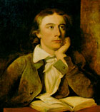 Keats fell in love with Fanny Brawne, a young woman whom he met shortly after the death of his brother. He was at first unimpressed, describing her as "ignorant--monstrous in her behaviour flying out in all directions . . ." But a relationship quickly developed, and they were engaged in 1819. The two wrote frequently to one another, but did not spend much time together. Keats was already fighting his own ill-health. In one letter, he wrote, "I have two luxuries to brood over in my walks, your Loveliness and the hour of my death." Keats wrote most of the poetry for which he is famous in one twelve-month period, from September 1818 to September 1819. He wrote "Ode on a Grecian Urn," "Ode to a Nightingale," "Ode on Melancholy," "La Belle Dame Sans Merci," and "To Autumn." One of Keats's sonnets foreshadowed his early death. He wrote, "When I have fears that I may cease to be / Before my pen has glean'd my teeming brain, / . . .�then on the shore / Of the wide world I stand alone, and think / Till love and fame to nothingness do sink." (1818). He died three years later, in a small bedroom in a house in Rome. His tombstone reads, at his request, "Here lies one whose name was writ in water." Keats wrote in a letter to a friend, "Nothing startles me beyond the Moment. The setting sun will always set me to rights�or if a Sparrow come before my Window I take part in its existence and pick about the Gravel." And he wrote, "If Poetry comes not as naturally as the Leaves to a tree it had better not come at all." A poem by Keats: I had a Dove I HAD a dove and the sweet dove died; And I have thought it died of grieving: O, what could it grieve for? Its feet were tied, With a silken thread of my own hand's weaving; Sweet little red feet! why should you die - Why should you leave me, sweet bird! why? You liv'd alone in the forest-tree, Why, pretty thing! would you not live with me? I kiss'd you oft and gave you white peas; Why not live sweetly, as in the green trees? |
