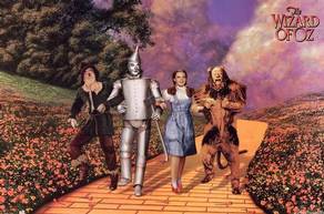| The Wizard of Oz is a film musical (1939) from the popular children's book of the same name written by L. Frank Baum. Dorothy, a young girl, lives with her aunt on a farm in Kansas. During a tornado, Dorothy is hit on the head by flying debris and knocked unconscious. She and her dog Toto are borne away to the Land of Oz, ruled by a wizard known only by his dreaded stenorian voice. Dorothy follows the yellow brick road to meet the wizard and enlist his help in finding her way home.. Along her path she encounters a host of strange characters whose names have become metaphors: The Tin Man, who has no heart; The Cowardly Lion; The Scarecrow, without a brain; The Wicked Witch of the West and the diminutive Munchkins. At the end of the road, Dorothy is brought before the Wizard's presence and she begs him to help her and Toto home. The Wizard's voice is fierce, but Dorothy pulls the curtain aside and unmasks the wizard a genial, bumbling fraud. Armed with a pair of ruby slippers and counseled by the Good Witch Glinda, Dorothy has but to will herself to get her wish. All ends happily in Kansas. ~Facts on File Dictionary of Historical and Cultural Allusions footnote: To read a metaphysical or theosophical interpretation of the story, go here: |