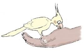 Com pessoas, a relação também é amigável e participativa. É um bicho de estimação para toda a famÃlia. Elas se apegam à s pessoas da casa e normalmente quando as vêem assobiam e se aproximam das grades da gaiola para as observarem de perto e acompanharem atentamente suas atividades. A única recomendação sobre o convÃvio entre Calopsitas e humanos é em relação à crianças pequenas e pouco acostumadas a lidar com aves. É preciso orientá-las para evitar que machuquem as Calopsitas caso as peguem na mão e também para que não as estressem com atitudes bruscas, como bater no viveiro ou gritar muito alto. Atitudes como essas deixam as aves apavoradas e desconfiadas com pessoas.