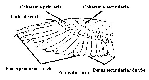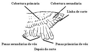 Para impedir que o pássaro voe, é preciso cortar algumas penas de vôo. Essa medida permite que você lhe dê mais liberdade fora da gaiola, sem se preocupar o tempo todo com uma possÃvel fuga. Outra vantagem é impedir que se choque contra uma parede ou janela, ou provoque algum acidente (como cair na água ou no fogo).