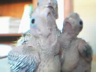 Alguns criadores aconselham a alimentação através de colheres de café ( pequenas ) . Se possível 'entortadas' nas bordas de forma a criar um pequeno 'funil' . Pegamos o alimento e damos diretamente no bico da ave. Elas aceitam o alimento normalmente.