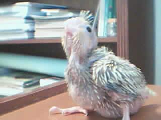 A partir da sexta semana você pode começar a deixar um pouco de mistura para calopsitas na gaiola. O filhote paulatinamente irá começar a comer sozinho, sem sua ajuda. Deixe disponível milho cru para o filhote.