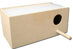 Procure adquirir ninho feito com boa madeira, geralmente custam mais caros mas sua durabilidade é muito maior. As medidas aproximadas do ninho é : 30cm - comprimento; 20cm - altura; 20cm - largura. O ninho possui uma divisão interna, que separa a sala (local onde ficam os ovos e filhotes), com o centro do fundo côncavo, para evitar a dispersão de ovos e filhotes, e a ante-sala, já de menor dimensão, onde ficarão os filhotes quase prontos para deixar o ninho.