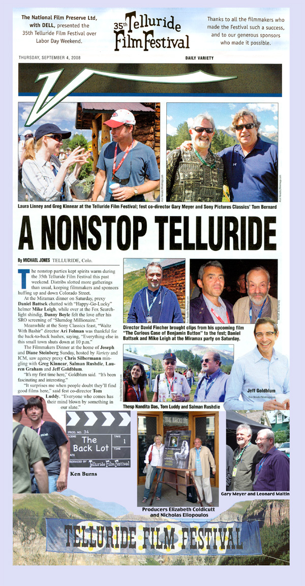 Telluride Film Festival Elizabeth Coldicutt and Nicholas Eliopoulos are pictured above from the Daily Variety