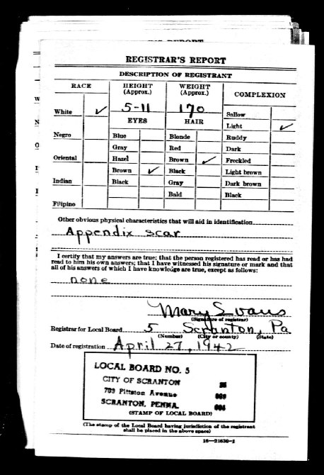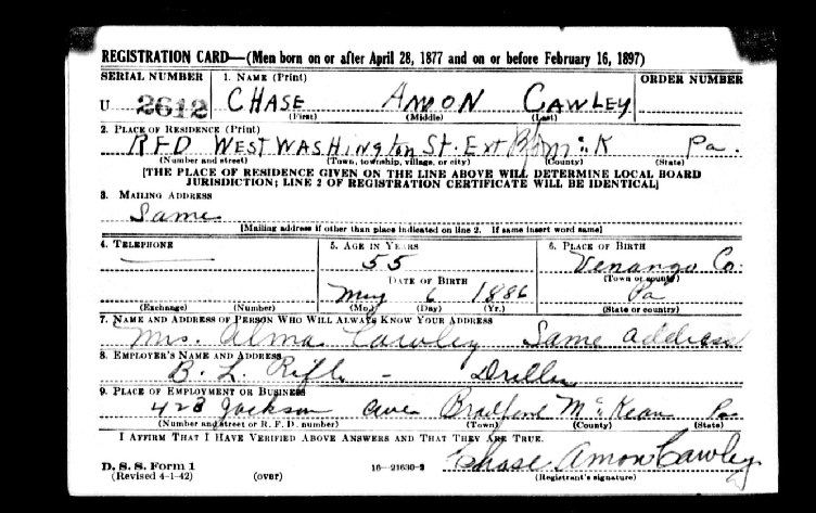 Chase Amon Cawley WW2 Draft Registration