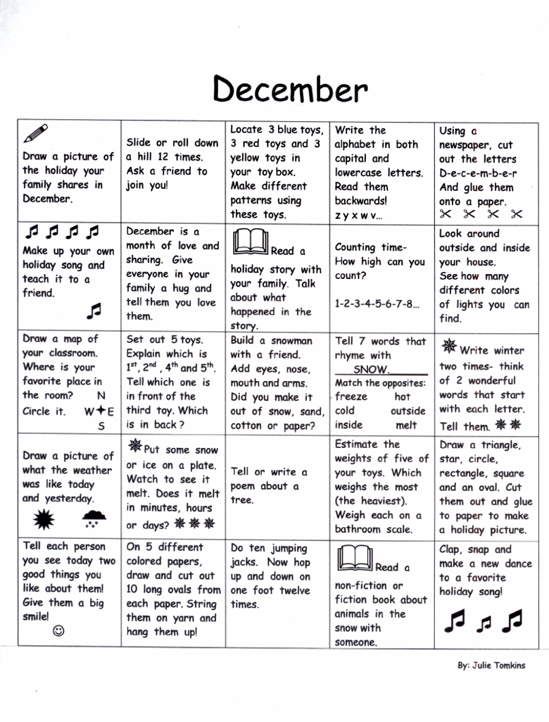 Kindergarten Activity Calendar- December