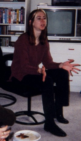 | On Saturday, March 31, 2001, our lovely attendants threw us a "Domesticated Wildlife" wedding shower. This thematic shower focused on sexy and animalistic things, since Erin and I are after all sexy, animalistic people who have barely been domesticated. *growls for effect* They fixed sexy little snacks, include surprisingly convincing boob cupcakes, gummi boobs and penises, pasta salad made with penis pasta, and animal crackers. The spread was tasty, and everybody enjoyed the homemade sangria along with the snackage. Instead of degenerating into the traditional shower games, they came up with this "skank point" game. Insider reference: Erin and I have a chore system that ranks each task according to time it takes multiplied by a "skank factor" of 1 to 5, with really heinous tasks meriting a "5" score. The only jobs with a "5" rating are emptying cat litter (an Erin job) and cleaning up cat yak (my job). They made up "skank point" cards worth one, two, and five points, and awarded them to people who said witty things or won points in board games. Somehow, I ended up with the most points, and Erin ran a close second (stacking, anybody?). The grand prize was a Ziploc bag filled with (unused) cat litter, and the runner-up prize was a "devil duckie," a red rubber duckie with horns. We had a good time sitting around chatting, reading George Washington's etiquette tips from the book Dave gave us out loud, and kicking back. Before everybody left, our lovely hosts handed out thematic gifts: glycerine soaps with plastic bugs embedded, you-grow-it dinosaurs, and shark church keys. Everybody loved them. Thanks to Psyche and Sheeri for all their work, and to Abi especially for hosting and putting it together. Special thanks to Christine for serving in her usual kitchen deity role. And thanks to everybody who came. Sorry the rest of ya'll couldn't make it...you missed a great time! |