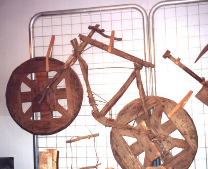 | Bicycle made entirely of wood... you may get a splinter in your bum... but your tires won't get punctured! |