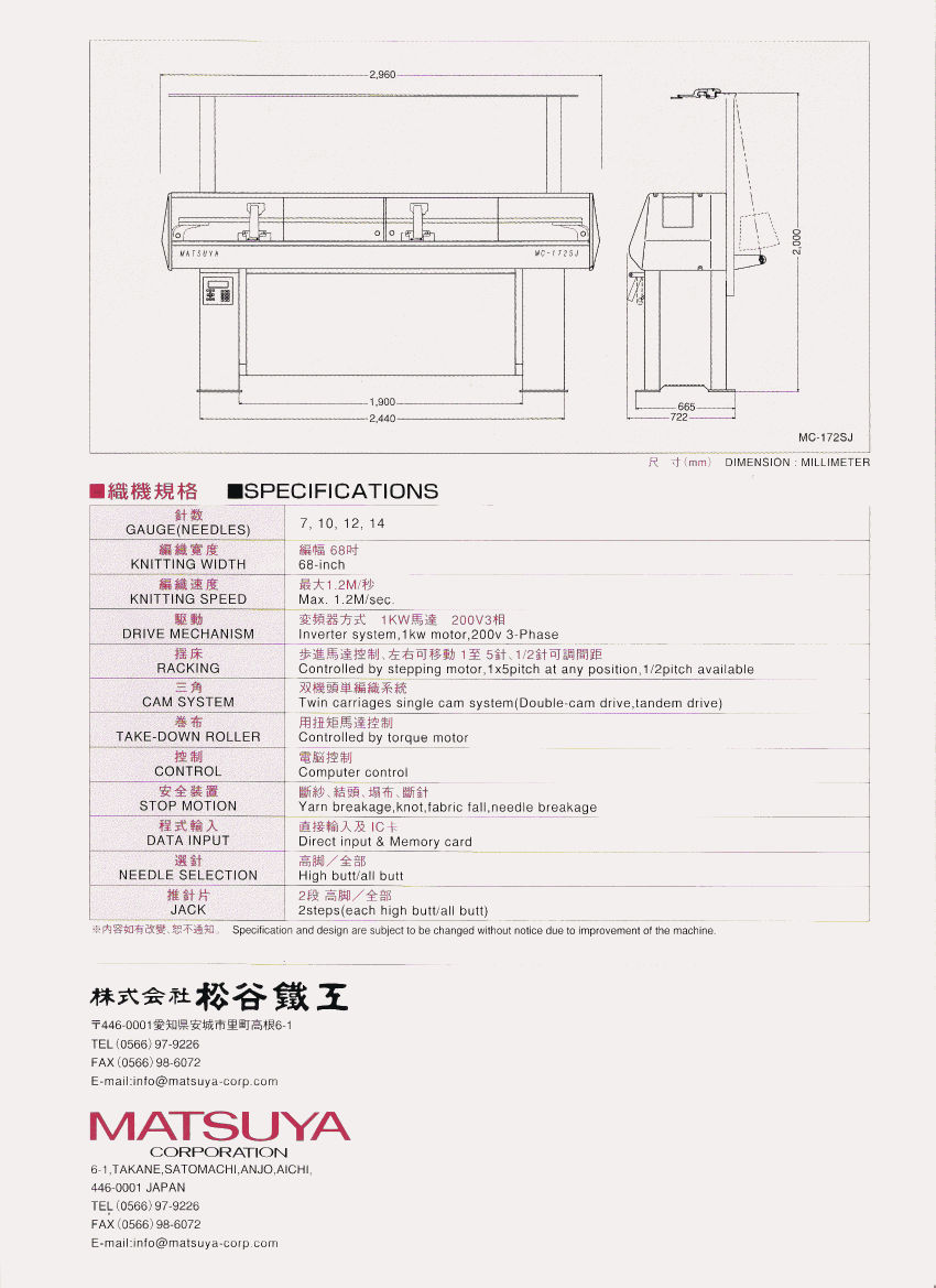 Todas las opciones de descenso del tejido: Mecánico, electrico, enrollado al ancho, plegado, patas largas para producir rollos grandes.
