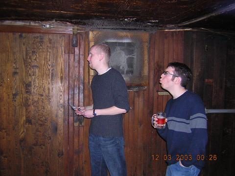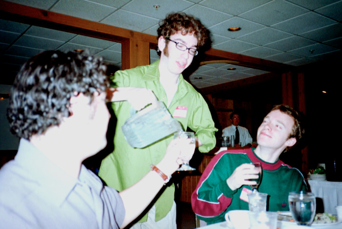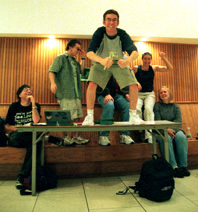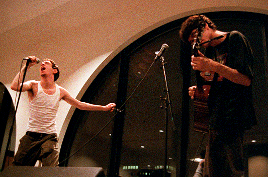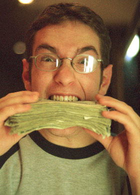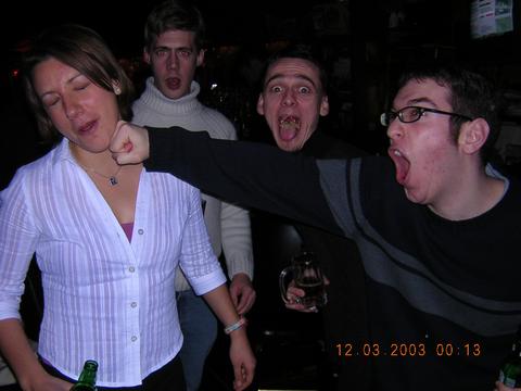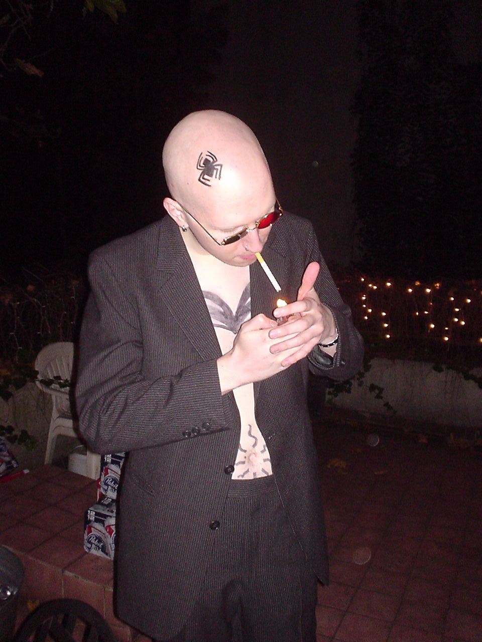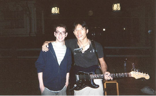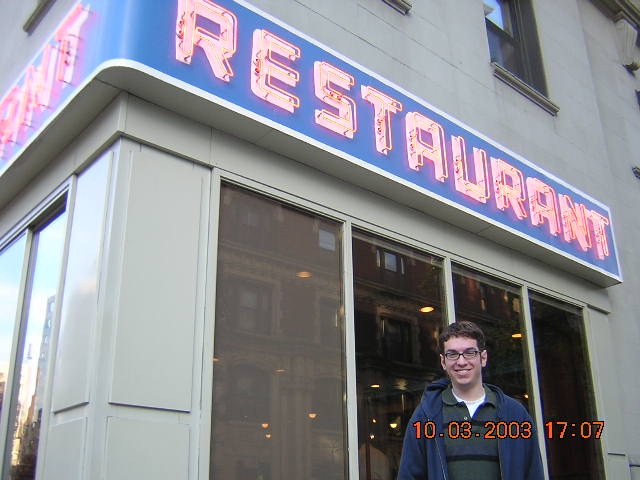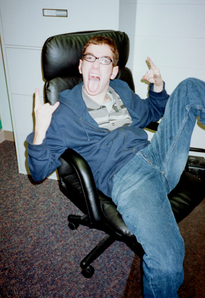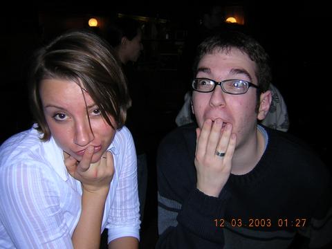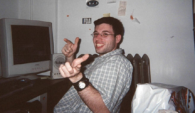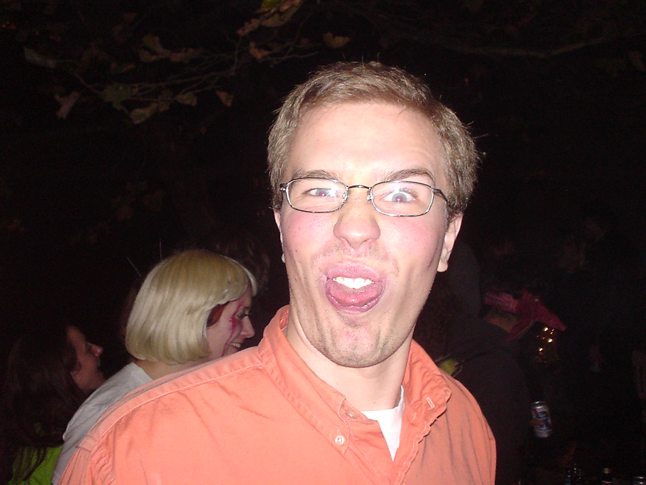 equals caring, or some crap like that... NEW! Happy Birthday Alberto! - This new batch is from Alberto's recent birthday party at Grassroots. Nice little group shot here. I'd tell you who's in it but from the time it took me to upload it to now I've totally forgotten who besides me is in it. NEW! Bullseye! - There's me and Mike Lyon playing darts - or rather, him playing and me making weird faces. I swear, I had no idea I was on camera there. NEW! Me Baby! ME! - Just in case you were wondering what I look likely lately here's a pretty good example. Good to see I'm really maturing into my 20s. NEW! Before...Pam's sharing the lens with me there. But she made an obnoxious comment about me so I was left with little choice... NEW! ...and After...I had to pop her. Matt & Robin: Styling - We got a whole bunch of Halloween 2K3 pictures. First up, dig me and Robin here. His facial expression kills me. He is way too cool for the room. Mike, Alberto, & Dan - Here's some NYU peeps: Mike, dressed as Gareth from 'The Office,' Alberto as "Sick Superman," and Dan as...um, Dan. Mike: Back on the Streets - There's Mike Lyon dressed as comic book gonzo journalist Spider Jerusalem, striking the classic "Back on the Streets" cover pose. If you know the character at all, that is an AMAZING shot (I took it, 'natch) of an AMAZING costume. Go-Go Goes Goes - Speaking of awesome costumes, dig on Minjae as Go-Go from the most excellent film Kill Bill. James So Pretty - James, who was NOT repeat NOT dressed like a pumpkin at his most photogenic. Maggie & Matt - Myself and the lovely Maggie, dressed as Satine (I probably spelled it wrong) from Moulin Rouge. I didn't get the costume - I never saw the entire movie - and I was honest that I didn't know what she was. Ho boy, was that ever a mistake. Smile Guys! There's Robin hiding behind Mike and Soren, whose expressions in this picture seem especially drunken and hilarious. The Poop Shoot Staff - Taken at Stash Bash 2, from left to right we have Antony Teofilo (Renaissance Man), yours truly, Mike Sampson (The Bottom of The Things), Arthur P. Huckledink (Smart are the Brave), and Ian Bonds (Game On!). Good looking bunch if you ask me. Poop Shoot & Jason Mewes - Another Stash Bash 2 shot with Jason "Jay" Mewes. His raised eyebrow kinda freaks me out there. Ming The Merciful - That's me and Ian with View Askew web master and graphic design guru Ming. We have him to thank for how cool my column looks, particularly that spiffy logo he designed. Let's all take a moment to reflect on his contributions to my work. No, I said one moment. Sigh, let's just move on. Bruce Campbell and Matt- Here at last, is the physical evidence of the meeting of two of the titans of the universe. Like Roosevelt and Churchill. Like Laurel and Hardy. It's Bruce and Matt! This was at the book signing in NYC. I must bronze this picture and preserve it always. Kevin So and Matt!- Kevin is an AMAZING folk singer/songwriter who I first heard at this year's Falcon Ridge Folk Festival. A chance encounter in Harvard Square led to an evening spent listening to him perform on the street for hours. It was incredible. I got the picture. Check out Kevin's website HERE. Matt & Poingly Take You High- Here's the finale of a recent performance. We're doing a rousing cover of Creed's Higher, so I, of course, had to take off my shirt to reveal a nasty wife beater. I guess you had to be there. Actually, you're probably lucky you weren't. Ambush At Big Apple Con- Don't ever try to give Stormtroopers phony credits for comics. I learned the hard way. Pray for a quick recovery for me. El Presidente- Here I am, as University Union President, in all my power, prestige and glory. Truly an awe inspiring figure. And, yes, that is my chair. There's A Party Going On- Here's an action shot from my pal Heather's suprise birthday party. I don't feel like listing everyone here, but obviously that's me and Pete in the foreground jamming on guitar. Freaky Deaky- Here's a quick snap done a week or so ago, check out the facial hair! Freaky deaky, indeed. Full Body Deaky- For some reason, the photog wanted a full body shot as well. This is my serious model face. Tiptoe Through The Tulips- I wish I had an explanation for this. Or a cute caption. I don't. I'm just very, very sorry. The Greatest Sight On Earth- Here's a picture of the finest place on earth I know. Okay I exaggerate, but only slightly. Just gorgeous. Matt And Tom's It only took me 6 years since the damn show ended, but I finally made my way up to 2880 Broadway at 112th, where the famous Tom's Restaurant stands. Truly, my life has reached its apex. The Troma Files: The Great Troma Building- Here it is, where all the magic happens. Unfortunately, they didn't let me work in that building. I wasn't pretty enough. So I worked in a third story walk up across the street. Not kidding either. The Troma Files: Ronni and Brian- Ronni, on the left, is the head of Troma Team Video. He took Brian's Subway sammich. Brian, on right, is the assistant editor at Troma. He was hungry. Playing with fire here folks. The Troma Files: SeanCo's CEO- This is Sean McGrath, assistant editor at Troma, my boss there, and the CEO and founder of the amazing SeanCo. Industries. A true visionary. The Troma Files: The Head Honcho- Gabe Friedman, head editor at Troma, and all around..er...guy. He's far more professional and talented than the picture denotes. But he does love that heavy metal music. The Taurus Of Love: Then- There it is in all its glory. The Steed. The Stallion. The mighty TAURUS OF LOVE! My car. What a beaut. The Taurus Of Love: Now- Thank goodness no one was hurt. That said, can I just whine; MY CAR!!! GAH!!! A Freshman is Born- Me on my first day in my frestman dorm room. Note the posters. Note the glasses. Note the jean shorts. Note the doughy-eyed optimism. Is that even how you spell doughy? Me and the Wad- That's me one of the first weekend's of junior year. That wad is all real money, fr