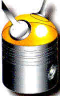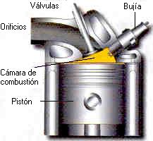| Es de construcci�n econ�mica, concentra la mayor cantidad de la mezcla en la proximidad de la buj�a, con lo cual disminuye al m�nimo el riesgo de detonaciones. Otra forma en que se previene el preencendido es que su forma permite muy buena refrigeraci�n de las esquinas cuando se presenta el escape de los gases. La turbulencia es producida ya que una parte del pist�n llega casi a estar en contacto con la culata y se crea una zona laminar. El rendimiento de este tipo de c�mara esta cerca al 99%. |