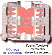 | Las v�lvulas que se accionan mec�nicamente deben ser revisadas y ajustadas peri�dicamente ya que el funcionamiento y desgaste normal del motor generan un juego entre los componentes del sistema valvular. Los s�ntomas comunes para detectar que el funcionamiento no es el �ptimo son una baja en el rendimiento del motor cuando este ha sido sincronizado y el m�s com�n que es un tintineo o golpeteo constante en el mecanismo. El juego valvular debe revisarse con un calibrador de galgas y el ajuste en admisi�n y escape es diferente seg�n el tipo y marca de motor. Para el procedimiento de calibraci�n se deben identificar las v�lvulas tanto de admisi�n como las de escape, para esto debe conocerse muy bien cual es el m�ltiple de admisi�n que estar� alineado con las de este tiempo y el de escape. En las siguientes figuras se muestra la disposici�n de algunos tipos de motores y su identificaci�n del sistema de admisi�n (en rojo) en la culata. |