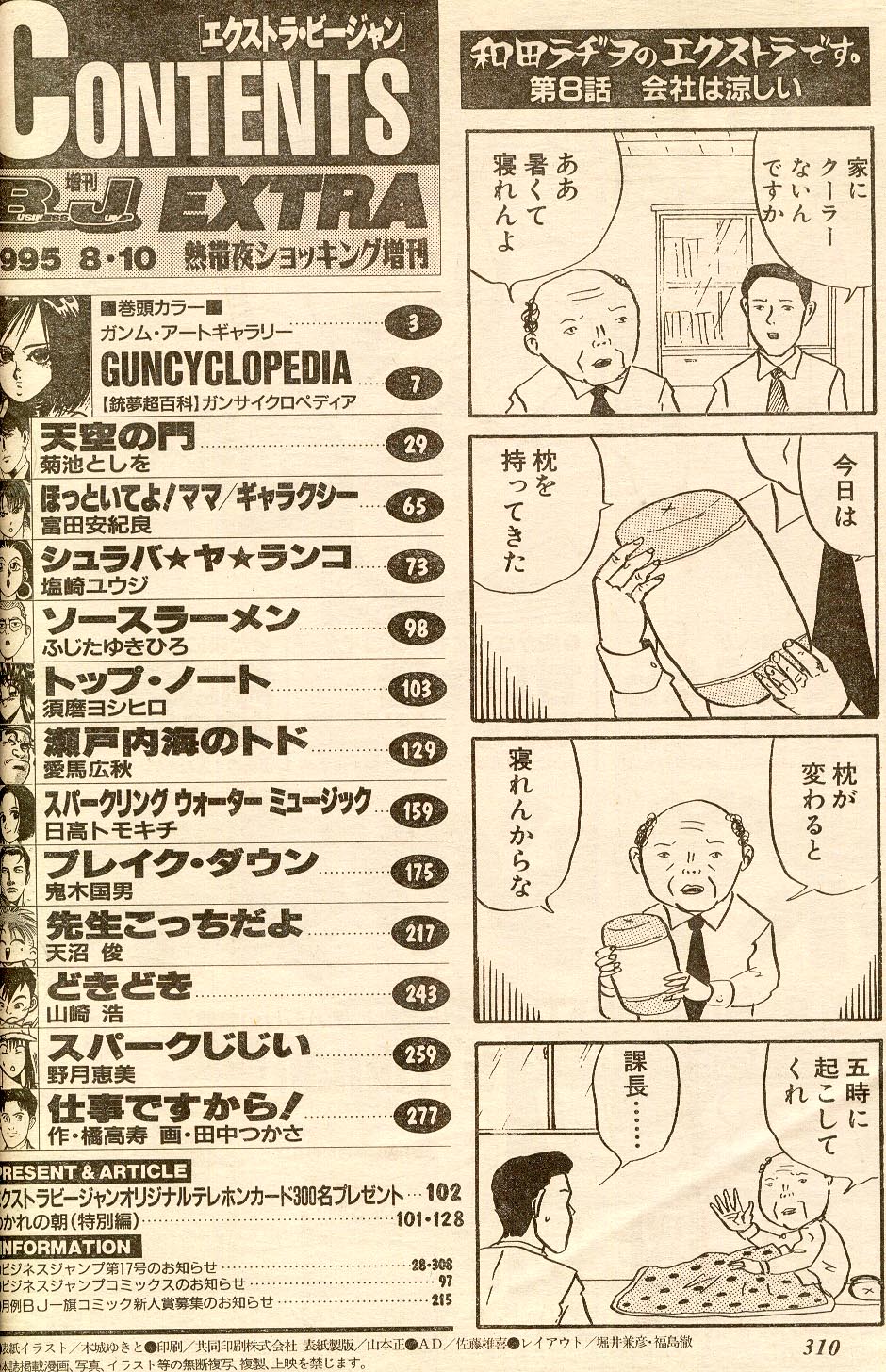 | These files are the Gunnm related content from the August 10, 1995 issue of Business Jump Extra. The actual file numbers represent the page numbers in that issue of Business Jump Extra. Gunnm - Cyclopedia: ���� File 01 ���� File 02 ���� File 03 ���� File 04 ���� File 05 ���� File 06 ���� File 07 ���� File 08 ���� File 09 ���� File 10 ���� File 11 ���� File 12 ���� File 13 ���� File 14 ���� File 15 ���� File 16 ���� File 17 ���� File 18 ���� File 19 ���� File 20 ���� File 21 ���� File 22 ���� File 23 ���� File 24 ���� File 25 ���� File 26 ���� File 27 |