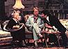 | Salome Jens, Greg Mullavey, and Graham Jarvis in the Haggers living room set during a script read-through |