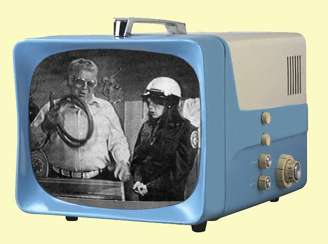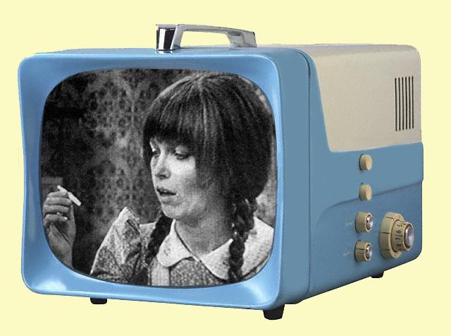 | These first six images are my attempt to recreate the look of Mary Hartman's kitchen TV set and are either video captures of the program or are television related in theme. I figured that the idea had run its course after these six and I've included the same shots in their original form just in case you don't appreciate the odd format. Click the thumbnail to enlarge. |