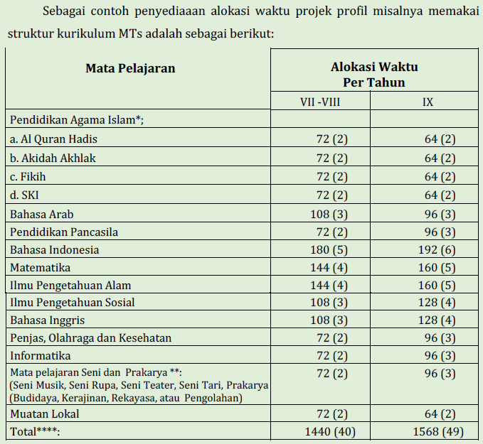 Jam pelajaran di atas adalah untuk kegiatan intrakurikuler, satuan pendidikan