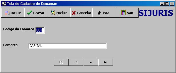 Nesta tela você cadastra as suas comarcas. O que você cadastra aqui poderá selecionar no cadastro de processos.
