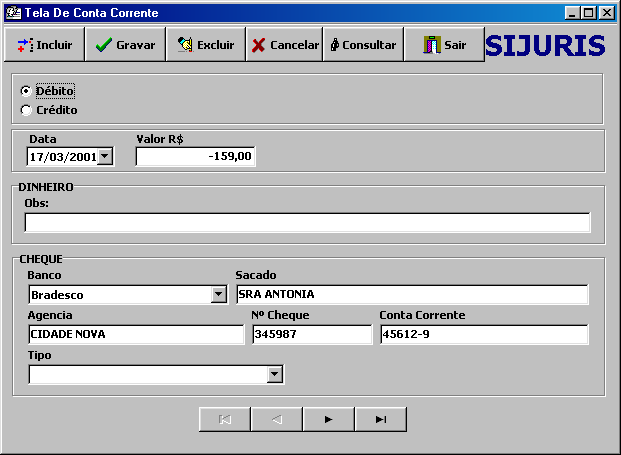 Nesta tela você cadastra e consulta seus lançamentos financeiros.