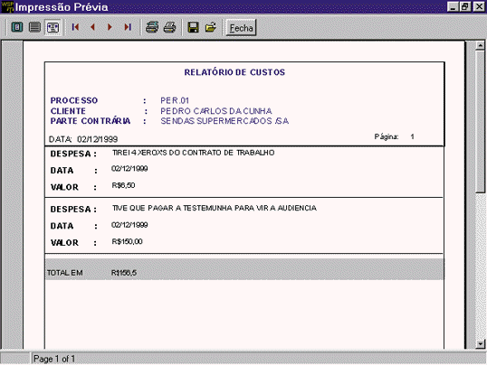 O sexto é fantástico, você escolhe os processos pela condição que quiser, no meu exemplo eu escolhi todos os processos que tenham uma parte contrária igual a sendas supermercados, o programa percebe que você escolheu pela parte contrária e intitula o relatório que esse campo, veja só como fica: