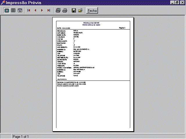O segundo Relatório são as informações de um cliente com o histórico geral, veja abaixo como fica (Neste relatório, devido ao fato que leva todas informações do processo, tive que através do próprio SIJURIS, aumentar o Zoom).