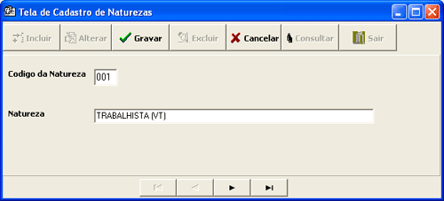 Cadastro e Consulta de Naturezas