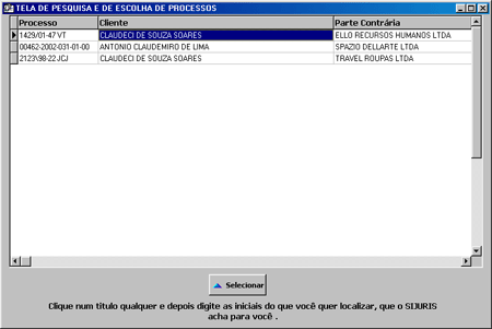 Nesta tela você cadastra e consulta processos.