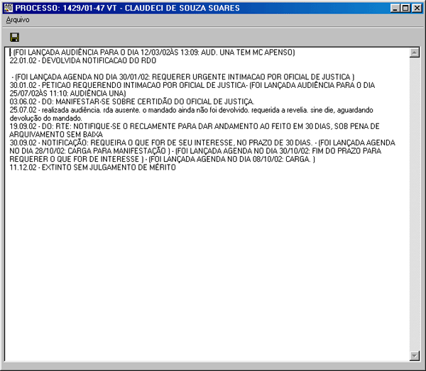 Se clicar no botão INTERNET, o programa vai direto para o site do tribunal e mostra todos os andamentos para você.