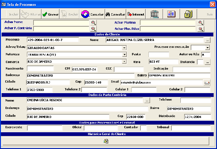 Além disso, você pode cadastrar vários clientes ou réus para o mesmo processo, para isso basta clicar no botão ao lado do cliente ou da parte contrária. Não exibo as telas para que esta página não fique mais pesada do que está.