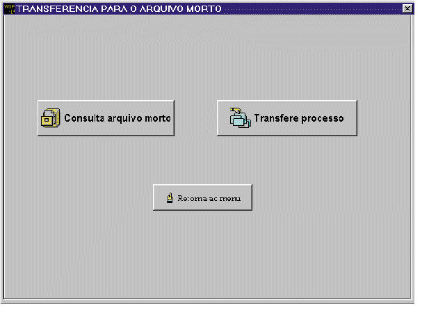 Nesta tela você escolhe se quer transferir para o arquivo morto se quer consultar o arquivo morto ou agora se quer transferir do arquivo morto para o arquivo vivo (novo).