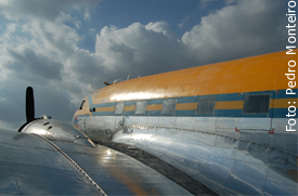 o Pitts S-2B Special da Aerobática, um Grumman American G-164B Ag-Cat B da Agroar e os pontentes Sukhoi SU26M de acrobacia aérea. O recinto era, porém, dominado por um imponente e histórico DC-3 Dakota, de 1937, presente no aeródromo desde Fevereiro do presente ano e que, segundo o director do aeródromo, poderá vir a ser operado para "voos turísticos a partir de Évora num futuro próximo, bem como realizar lançamentos de pára-quedistas".