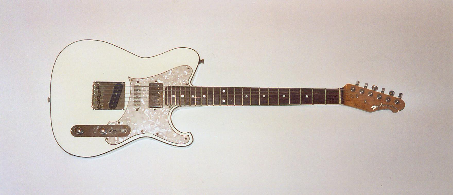| Features-Yellow Poplar body (w/3-ply B/W/B binding, front and back) -Birdseye Maple neck (w/Mother-Of-Pearl "Rythmaster" inlay) -Rosewood fingerboard (w/white, single ply binding and Mother-Of-Pearls dots) -Seymour Duncan Pickups -STL-1B Vintage Broadcaster, bridge -SSL-1 Vintage Staggered, middle (RWRP) -SH-1 '59, neck (covered) -Two-way Stainless Steel truss rod (headstock access via matching wood cover) -Gotoh sealed tuners -3-ply Pearloid pickguard -Fossil Ivory nut Other-"Non-Custom" chrome bridge, control and neck plates -Standard electronics (5-way switch, volume, tone, no coil splitter) -Traditional "Tele" output jack |