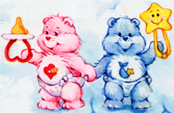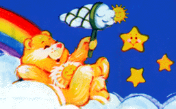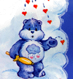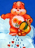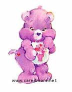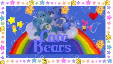 | The Care bears are a group of cuddley little bears that help us understand our feelinfs and cheer us up when we are feeling blue, each care bear deals with a different emotion. These bears are from the land of care-a-lot, way up in the fluffy, white clouds. This is where they live, play, and watch over the people down on earth. Care-a-Lot is a part of the kingdom of caring. The care bears are not alone in this kingdom. They share this place with their cousins, whose home is called the Forest of Feelings. the Forest of Feelings is a beautiful place, with trees and flowers and sprakling rivers. The care bears also have some friends around, as well as some enmies. The care bears battle their enemies to protect kindness throughout |
