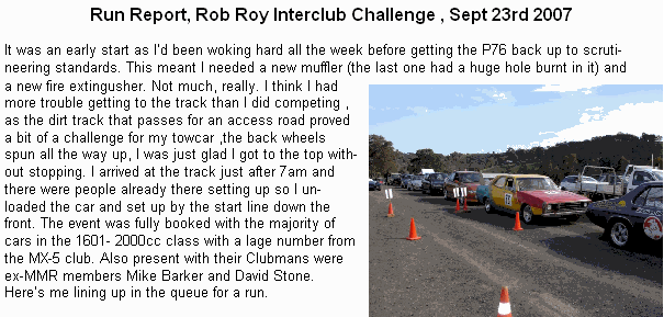 the Interclub Challenge at Rob Roy on September 23rd and ran some pretty