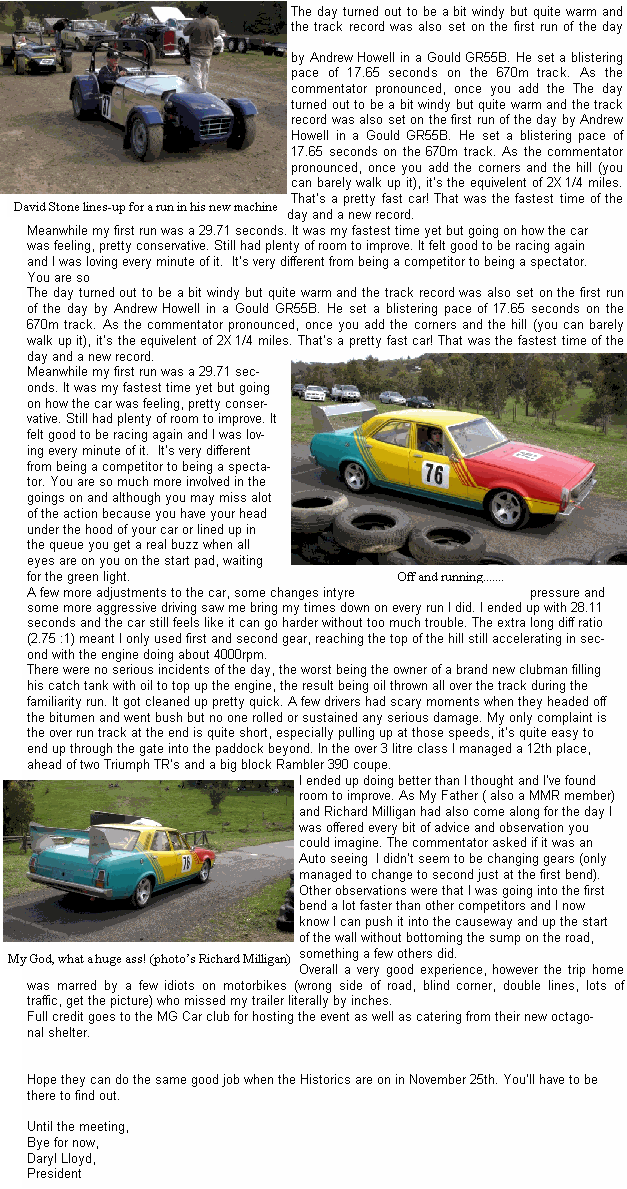 managed to drag himself off to Phillip Island with the MG to compete in