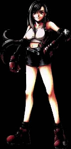 | Cloud Strife Kleur haar: blond Kleur ogen: van nature blauw Geboorte datum: 19 Augustus Leeftijd: 21 Wapen: tweehandig zwaard Geboorteplaats: Nibelheim Cloud is een huurling. Op de gevoelige leeftijd van 21 jaar is hij een ex-lid van Shinra's elite team, genaamd SOLDIER. Hij wordt ingehuurd door een rebellen groep (AVALANCHE) voor een aanslag op Shinra. Het doel is een van de Mako reactors van Shinra te vernietigen die zich in de stad Midgar bevinden. Het verhaal rond Final Fantasy VII gaat over hem. Het merendeel van de tijd ben je genoodzaakt hem in je team te hebben omdat zijn vechtkunsten van hoge kwaliteit zijn. Hij speelt een sleutelrol in het spel. Op den duur zal hij bewijzen dat zijn zwaardkunsten niet te evenaren zijn. Probeer hem zoveel mogelijk in de voorste rij (front row) te houden tijdens gevechten, omdat je dan volledig van zijn vechtkunsten kan profiteren. Zijn gebruik van magie is erg goed, maar stop hem niet vol met materia. Barret Wallace Kleur haar: bruin Kleur ogen: bruin Geboorte datum: 15 Augustus Leeftijd: 35 Wapen: machinegeweer Geboorteplaats: Corel Barret is de leider van een rebellen groep en wil de wereld redden van Shinra door hun reactors te vernietigen. Op 35 jarige leeftijd heeft hij er moeite mee zijn dochter, Marlene te verlaten. Hij is erg anti-Shinra, maar waarom dit precies is weet men niet. Er wordt vermoed dat Shinra verantwoordelijk is voor de dood van zijn vrouw. Barret is in zijn hart een gevoelige man, ondanks dat zijn uiterlijk dit niet echt waarmaakt. Hij heeft zowel lange als korte afstand wapens, dus hij kan zowel in de voorste (front row) als in de achterste rij (back row) tijdens gevechten. Toch is het het beste om hem in de achterste rij te houden, hij kan erg veel schade doen zonder dat hij zelf ook schade krijgt. GOOI HEM NIET VOL met materia! Als je dat doet zal zijn aanvals kracht afnemen en zullen zijn HP's ook minder worden. Hij moet zo sterk mogelijk zijn voor later. Tifa Lockheart Kleur haar: bruin Kleur ogen: bruin/roodachtig Geboorte datum: 3 Mei Leeftijd: 20 Wapen: Geen, ze vecht met haar handen (en voeten) Geboorteplaats: Nibelheim Tifa is een jeugdvriendin van Cloud. Ieder gingen ze hun eigen weg toen Cloud bij SOLDIER ging werken. Tifa ging naar Midgar toen haar ouders overleden. Nadat ze daar haar eigen bar had geopend (Tifa's 7th Heaven) ontmoette ze Barret, en sloot ze zich aan bij AVALANCHE. Na hun eerste missie wil ze niets liever dan Cloud in het team houden. Tifa vecht met haar vuisten en over het algemeen zijn haar aanvallen zwakker dan Cloud en Barret. Dit geld niet voor haar limit break! Probeer zo snel mogelijk haar hele reeks van aanvallen te krijgen. Tifa moet eigenlijk altijd op de voorste rij (front row) staan tijdens gevechten. Ze kan goed gebruikt worden voor genezing (Cure) en om dingen te stelen van de tegenstanders (steal). Ze is erg snel, maar tegen eindbazen is ze niet zo handig. |