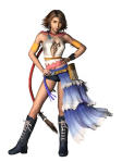| Yuna Leeftijd: 19 Standaard Dressphere: Gunner (Schutter) Nadat ze Sin heeft verslagen, is Yuna teruggekeerd naar haar geboorteplaats op Besaid. Hier brengt ze in alle rust haar dagen door. Toch heeft ze het gevoel dat ze iets mist. OP een dag laat haar vroegere Guardian Rikku haar een film zien en ze besluit opnieuw op reis te gaan. Als Spherehunter gaat Yuna op zoek naar kristallen die het mysterie kunnen ontrafelen. Ze moet vaak vechten voor haar leven, maar kan het nog steeds niet laten om mensen in nood te helpen. Rikku Leeftijd: 17 Standaard Dressphere: Thief (Dief) Nadat Rikku samen met Yuna de kwaadaardige Sin heeft verslagen, is ze twee jaar lang door Spira getrokken samen met alle andere Al Bhed om de mensen alles over machina te leren. In deze tijd van bezinning zocht een groep Al Bhed aansluiting bij de Spherehunters. Op zoek naar antwoorden. Met hun vliegmobiel Celsius als basis richtte Rikku samen met Buddy en Brother de Gullwings op. Toen ze ook Yuna had overgehaald zich bij de Gullwings aan te sluiten, kon de lange reis beginnen. Als vanouds houdt Rikku s tomeloze energie het team Alert. Paine Leeftijd: 18 Standaard Dressphere: Warrior (Strijder) Paine is gewapend met een eenhandig zwaard en een koele houding. Het schijnt dat ze haar heil heeft geozcht bij de Gullwings vanwege een gebeurtenis in haar verleden. Wat er precies is gebeurd, weet niemand. De carpriolen van de Gullwings leiden vaak tot sarcastische opmerkingen van Paine, maar daar trekt niemand zich veel van aan. Nooj Leeftijd: 21 Nooj is de leider van de jeugdbende Youth League. Hij is een exkruisvaarder die de Youth League oprichtte omdat hij walgde van de illegale praktijke van de partij New Yevon. Hij verloor zijn linkerarm en -been in de strijd tegen Sin. De jongeren van de Youth League zijn nogal heetgebakerd en werken zich regelmatig in de nesten. Baralai Leeftijd: 20 Baralai staat aan het hoofd van de partij New Yevon. Hoewel hij pas is aangesteld, heeft hij al veel respect verworven onder de andere partijleden. New Yevon voert een nogal conservatief bewind. De bevolking heeft echter niet veel vertrouwen in deze partij. Ze hebben een nogal dubieuze handelwijze en hebben zelfs Spheres gestolen. Gippal Leeftijd: 18 Gippal is de aanvoerder van de machinagroepering Al Bhed Machina Faction. Vanuit hun basis in Djose Temple graaft deze groep oude Machina op om machinawapens te ontwikkelen. |