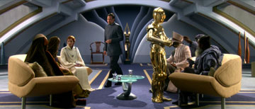 sit in Padmé's living room. C-3PO serves drinks to the guests.