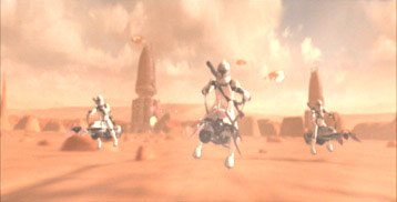 Question: On the Episode II DVD, there are animatics of other tank droids and clone troopers on speeder bikes. How far did those sequences get. Were there CG models made of them?