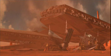 Ben Snow's Answer: The shots were never put into production, but we did indeed complete models, including partial texture paintwork, for the speeders and the tank droid before they were cut.
