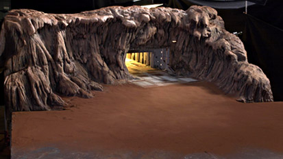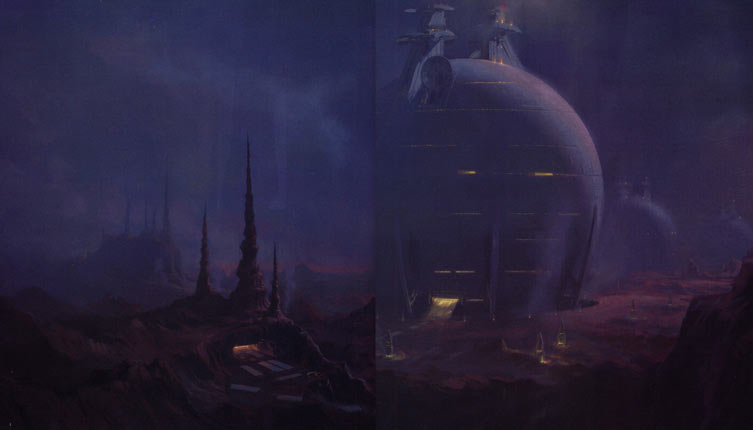 The first picture below is from Star Wars Insider magazine #56, the second is from the AOTC Scrapbook and the third is a Miniature of the Droid Factory entrance from the official site's Image Attack series. The forth is a Erik Tiemens production painting of the Core Ships being loaded with Droids. Notice the miniature entrance matches the entrance in the painting.