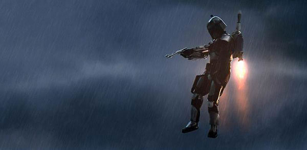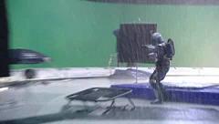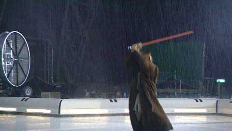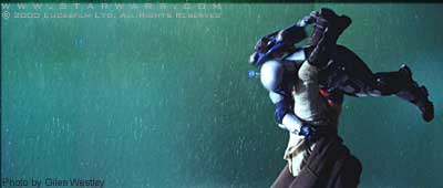 Obi-Wan blocking more shots from Jango as he flies around. (This footage can be seen in Making of Episode II #10 "Good to G.O.") It looks like some of this unused footage of Obi-Wan was used to make the rain battle "Options Menu" on the DVD.
