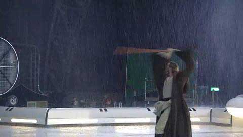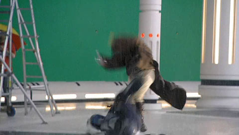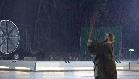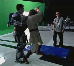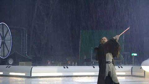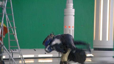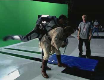 Obi-Wan then flips Jango over his shoulder. (This footage can be seen in Making of Episode II #10 "Good to G.O" and Making of Episode III #11 "Becoming Obi-Wan" as well.)