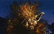 The Wookiees BARK as the Jedi climbs into the WOOKIEE POD and takes off into the dusk sky.