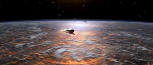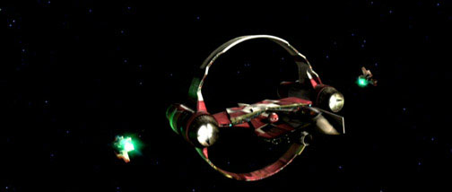 DVD Info: This scene is one of the eight deleted scenes on the DVD. The dialogue about Yoda probing the Darkside is omitted. The shots of Obi-Wan sitting in the cockpit speaking to Mace are also gone.