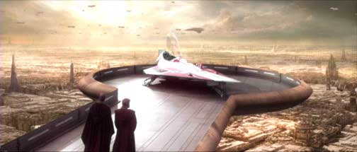 EXT. CORUSCANT, LANDING PLATFORM - LATE AFTERNOON