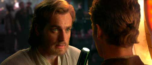 Before going into the Nightclub to find Zam Wesell, Obi-Wan scolds Anakin about losing his lightsaber. There were a couple lines of dialogue cut from the film. These lines did appear in the Forbidden Love trailer though. This scene was reshot at least on Obi-Wan's side as he looks different in the movie version compared to the version shown in the trailer.