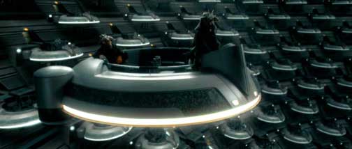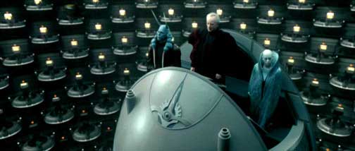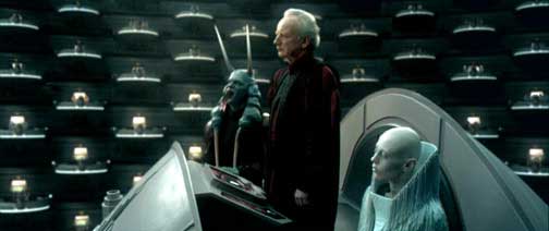 DVD Info: This scene is one of the eight deleted scenes on the DVD. A lot of material has been left out for some reason however. The DVD's version of this scene does not include Palpatine's announcement of Padmé's assassination and his sombre speech about her. Or Padmé's surprise entrance and some arguing between the various Senators. Instead the scene begins with Palpatine's line: "negotiations are continuing with the separatists. Peace is our objective here... not war."