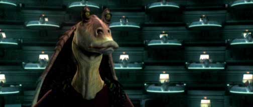 There is a moment of silence. ASK AAK, the SENATOR of MALASTARE, moves his pod into the center of the arena.