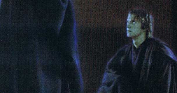 As ANAKIN surveys the carnage, a DARK-ROBED SITH LORD enters. ANAKIN turns to DARTH SIDIOUS and kneels before him.